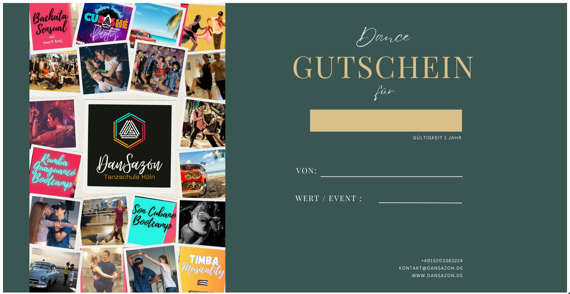 🎶 Einlösbar für Kurse, Bootcamps sowie Einzel-Privatstunden oder Paarstunden.